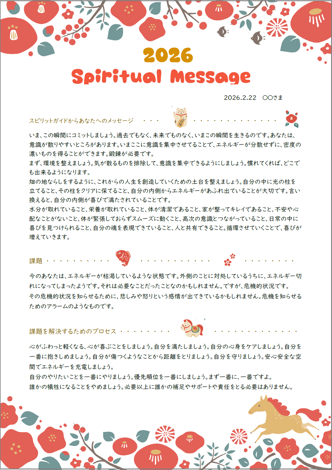 2026スピリチュアルメッセージ ※A4用紙2枚程度