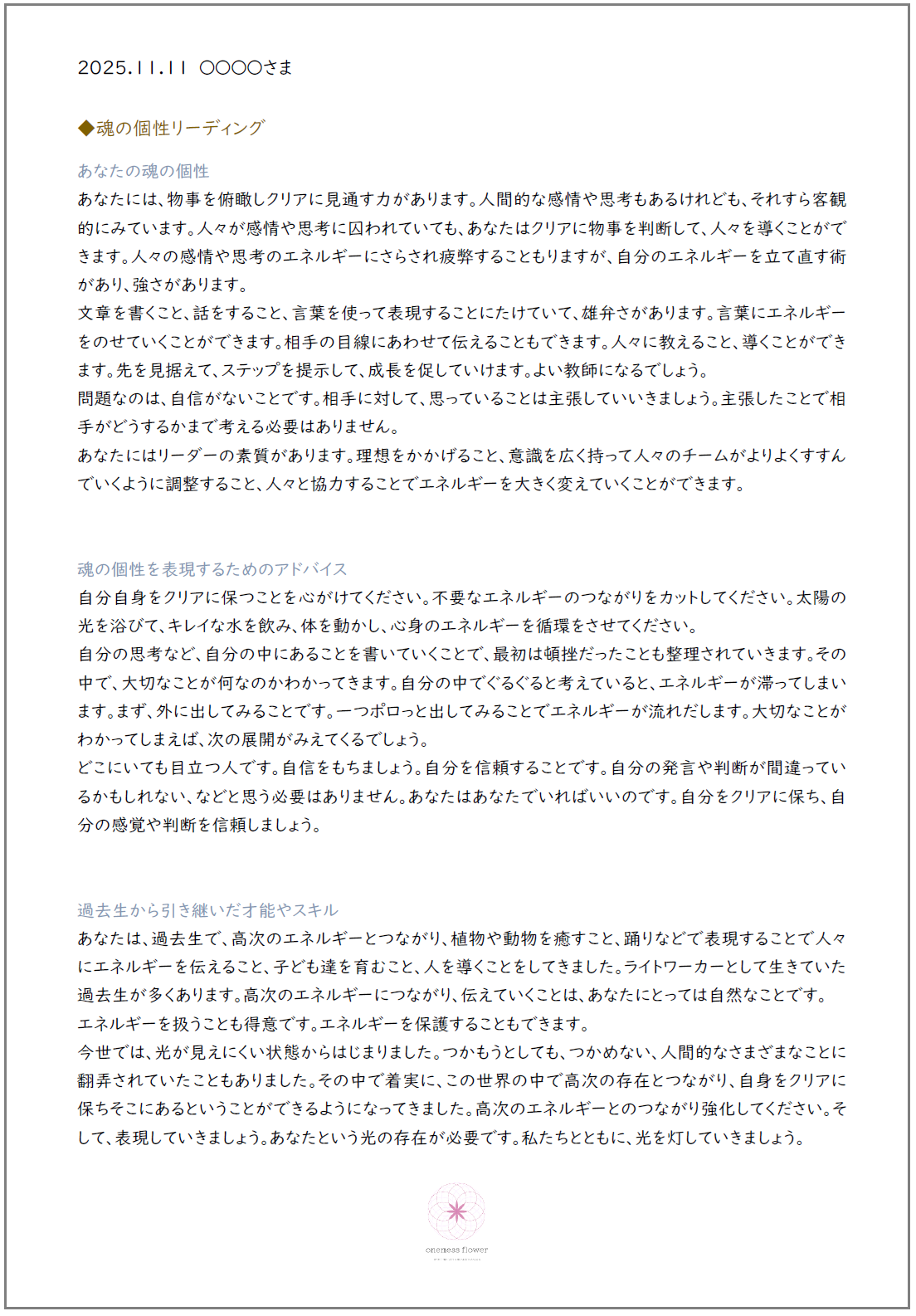 魂の個性リーディング/スピリチュアルリーディング・カウンセリング 7,700円